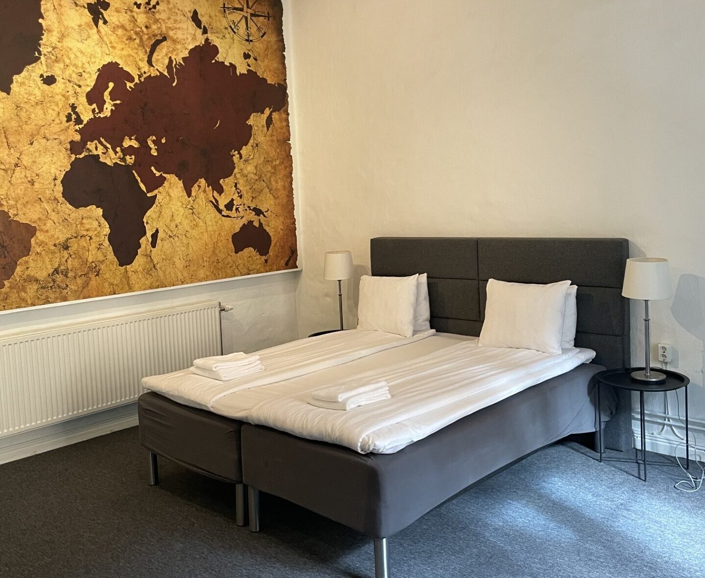 - 180 cm bred säng + 180 cm bred säng eller 180 cm bred säng + 2x 90 cm bred säng.